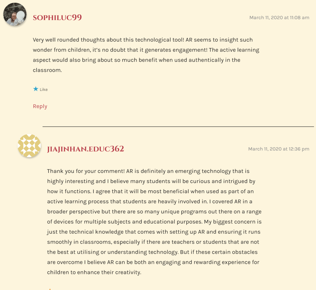 Community Engagement https://jiajinhaneduc362blog.wordpress.com/2020/03/09/week-1-learning-technology-critique-augmented-reality/comment-page-1/#comment-1 Share this: Share on X (Opens in new window) X Share on Facebook (Opens in new window) Facebook Like Loading... Pages: 1 2 3 4 5 Leave a comment Cancel reply Δ